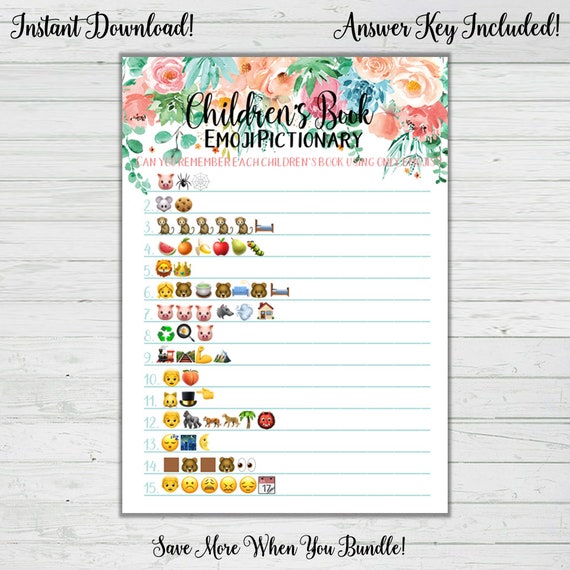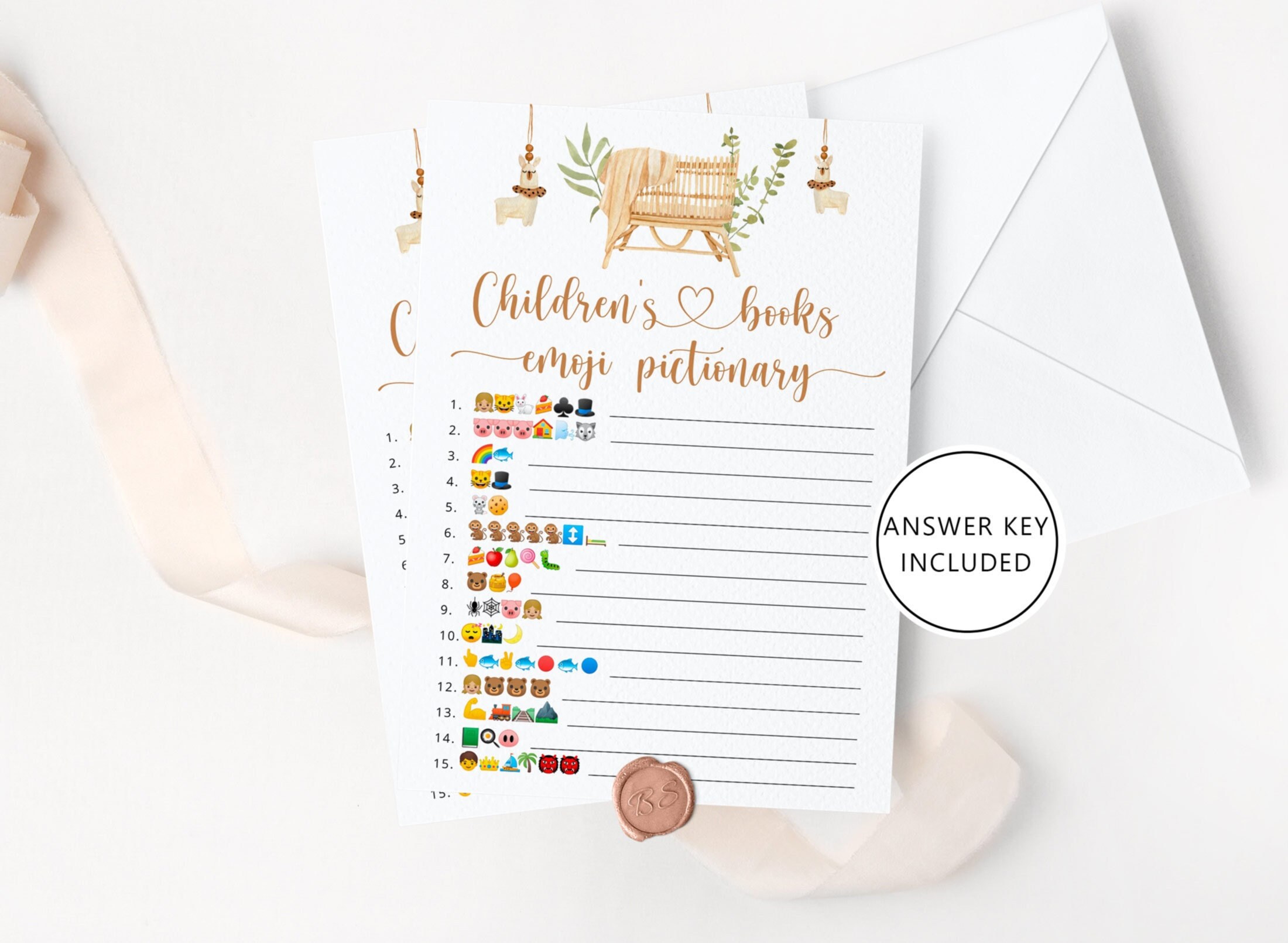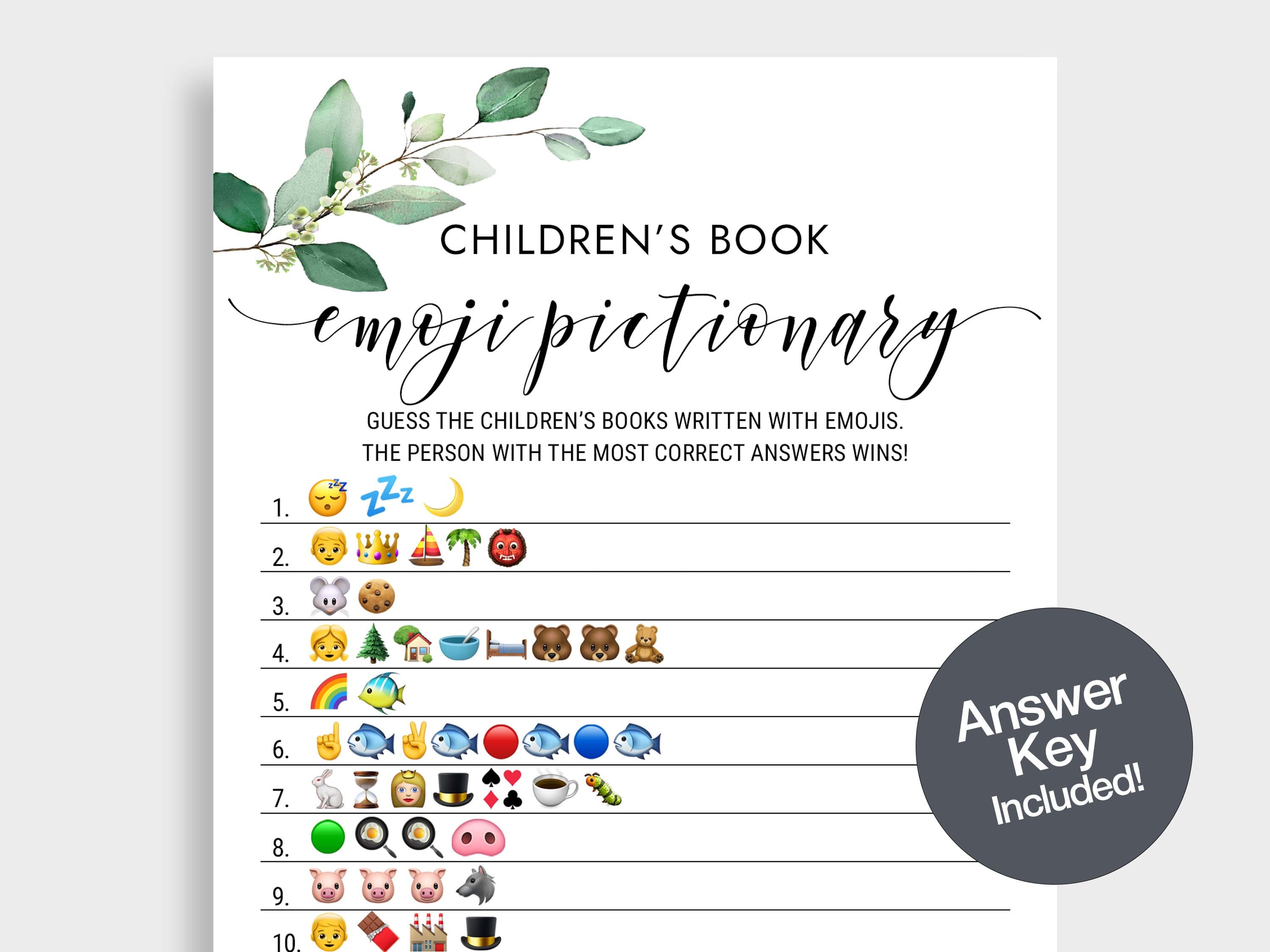 Childrens Books Emoji Pictionary Printable Botanical Baby Shower Games Ohhappyprintables